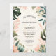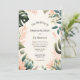 Eine wunderschön gestaltete Hochzeitseinladung mit eleganten Blumen- und Blattdesigns lädt die Gäste zu einer Hochzeit der Braut und des Bräutigams in intimer Atmosphäre ein.