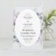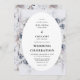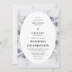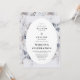 Botanischer Winter Hochzeitseinladung. Das Design zeichnet sich durch ein ovales, weißes gerahmte mit botanischen Aquarellblumen und festlichem Laub aus. Moody Farbtöne von Grau, Bues und Braun schaffen ein wintery-Ambiente und die einfache Vorlage ist einfach zu anpassen.