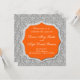 Vollständig anpassbare schöne graue und orange Damast Einladung. Das Hintergrundbild ist ein Bild, das Sie ersetzen können. Die Textfarbe und der Schriftart ist ebenfalls vollständig anpassbar, ändern Sie ihn auf das passende Tagesthema Ihrer Hochzeit. Der Damast-Hintergrund auf dieser Hochzeitseinladung wird nah-oben, vorne und Mitte gezeigt, genau wie es für Braut und Bräutigam an ihrem glücklichen Tag sein sollte. Wenn Sie das Design mögen, aber es ist nicht der richtige Anlass, können Sie den Text ändern. Dies könnte leicht für eine Geburtstagsfeier oder eine Frühjahrszeit zusammenkommen.