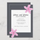 Graue Hochzeitseinladung mit rosa Blume. Moderne und minimalistische Einladung zur Hochzeit.