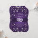 Diese romantische und dramatische lila und silberne blumenförmige Einladung hat ein PRINTED RIBBON, ein Paar von PRINTED Diamanten und Glitzer verbunden Juwelenherzen und metallische Look silberne Blume auf ihm. ****BITTE BEACHTEN SIE, dass alles drucken wird, wie es auf Ihrem Monitor angezeigt wird. Wenn Sie Tippfehler, Alignment oder Größenprobleme haben, wenden Sie sich bitte an mich, um Hilfe zu erhalten, bevor Sie bestellen. Ich kann nichts tun, wenn die Bestellung bei Zazzle aufgegeben wurde. Wenn Sie weitere passende Artikel benötigen, schicken Sie bitte eine E-Mail an niteowlstudio@gmail.com.