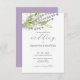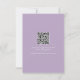 Rett auf Papier und Geld mit dieser nachhaltigen Hochzeitseinladung mit QR-Code. Die preisgekrönte Hochzeitsfeier ist ein elegantes und stilvolles Design und lädt zu einer kalligraphischen Typografie mit klassischem Sans-Schriftart ein. Ein oberer Rand des botanischen Aquarelllavenders und Grüns umrahmt Ihre Details. Die Karte kehrt zu Ihrem Hochzeitsstichtencode und Platz für zusätzliche Details über einen lila lila Hintergrund zurück. Für mehr Geld Hochzeit lädt www.zazzle.com/dotellabelle ein