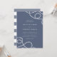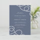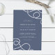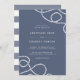 Elegantes Hochzeitsdesign an der Küste mit weißer Schrift auf einem blau-grauen Schieferboden, an den Ecken mit Loops aus geflochtenem Seemannseil hervorgehoben. Die Einladungen kehren zu breiten nautischen Streifen um.