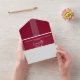 Moderne Hochzeitseinladung mit leicht zu zerreißenden, perforierten UAWG-Postkarten. Ändern Sie einfach den Text nach Ihren Wünschen. Burgundy Farbe mit Blumenmuster gezeigt. Verwenden Sie den Rücksendeadresse-Teil der Vorlage, wenn Sie die Adresse gewollt, die direkt auf der UAWG-Postkarte gedruckt wurde, oder Sie können für Rücksendeadressen-Aufkleber wählen. Verwenden Sie die Vorlage zum Personalisieren.
