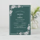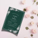 Feiern Sie Ihre Liebe in zeitlosem Stil mit dieser Grün- und Weißblütenhochzeit. Dieses Design mit eleganten, weißen Rosenabbildungen in jeder Ecke und einem doppelzeiligen Rahmen bildet das perfekte Gleichgewicht zwischen romantischem Charme und klassischer Eleganz. Der tiefe smaragdgrüne Hintergrund bildet einen starken Kontrast zu den aufwändigen botanischen Kunstwerken, während knackige Serif-Schriftart einen formalen und hochwertigen Ton vermitteln. Ideal für Hochzeiten im Garten, elegante Soirées und traditionelle Zeremonien. Design Highlights: Verzierte Blumenbilder (einschließlich Rose und Grünpflanzen) in allen vier Ecken Dunkelgrüner Hintergrund für ein raffiniertes, luxuriöses Erscheinungsbild Formal Serif Typografie mit klarem, strukturiertem Layout Prominent Platzierung von Hochzeitsdetails und UAWG Perfect für digitale oder gedruckte Formate Perfect For: Elegante oder traditionelle Hochzeitsgarten oder botanische Veranstaltungen Paare suchen nach einem Gleichgewicht zwischen romantischen und formalen Technik