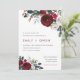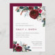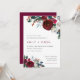 Erschwingliche, individuell bedruckte Winterhochzeit-Einladungen mit einem eleganten, blumengeschmückten Rahmen in bordeauxrot, grün und weiß. Personalisieren Sie die Vorlage mit Ihren Hochzeitsszenarien Details oder verwenden Sie die Designtools, um den Text anzupassen, wählen Sie alle Hintergrundfarben und bearbeiten Sie die Schriftart, um Ihre eigene einzigartige Hochzeitseinladung Design. Auf der Rückseite befindet sich ein hübscher bordeauxfarbener Hintergrund, oder mit dem Leerzeichen können Sie bei Bedarf zusätzliche Foto oder Texte hinzufügen. Dieses wunderschöne Blumendesign eignet sich perfekt für eine Hochzeit während der Weihnachtszeit.