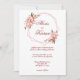 Eine zeitlose Einladung mit einem geometrischen Hoop, der Ihre Namen umgibt. Der Korallenriff ist mit Blumenelementen aus Rot und Rot geschmückt. Ihre Vornamen werden in einem eleganten Rot-Script-Schriftart angezeigt. Nachnamen und andere Details erscheinen im klassischen, ausgeklügelten Serif-Schriftart. Auf der Rückseite finden Sie Ihre Namen und das Hochzeitsdatum, gerahmt von einem Blumenstrauß.
