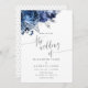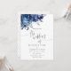 Navy und weiße Blume handschriftlich Typografie Hochzeitseinladungen mit Akzenten von Silberfolie.