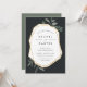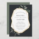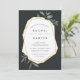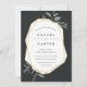 Unsere elegante botanische Olive Leaf-Hochzeitseinladung umrahmt Ihre Hochzeitsdetails mit einer schicken geometrischen Grenze aus Gold, mit handgezeichneten Illustrationen aus Olivenblättern, die an den Ecken aussehen. Moderne Schriften in schwarz vervollständigen das Aussehen. Die Einladungen kehren zu einem soliden, staubigen Olivgrün um.