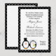 Dies ist eine niedliche Einladung mit einem schwarz-weiß gepunkteten Rahmen und einem Pinguin Hochzeitspaar, die Sie für Hochzeitseinladungen oder jeden besondere Anlass verwenden können. Der Text ist vollständig an Ihre Bedürfnisse angepasst und kann so individuell angepasst werden. 'Sie können den Schriftart und die Farbe ändern. Die Rückseite ist leer, sodass Sie zusätzliche Informationen hinzufügen können.