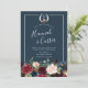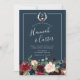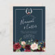 Unsere Einladung zur Hochzeit von Radiant Bloom umrahmt Ihre Hochzeitsdetails mit einem oberen Rand von lackierten Aquarellfarben und Blattwerk in den Schmucktönen Bordeaux-Marsala, Marineblau, Cerise, Rose und Grün. Eine moderne und Bio Wahl in lebhaften Farben mit üppigen Botanicals und Ihren Namen in handgeschriebener Schrift. Personalisieren Sie mit Ihrem Single initiale Monogramm oben, umgeben von weißen Antlers mit passenden Blume.