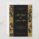 Schwarz und Gold Blumen Einladung Hochzeit - Sind Schwarz und Gold Ihre Hochzeitsfarben? Sie suchen eine Mischung aus Spaß, Stil und Eleganz für Ihre goldene und schwarze Hochzeitsarbeit? Karo diese Hochzeitseinladung aus. Die Mitte der Einladung hat einen schwarzen Hintergrund mit goldenen Buchstaben. Die Seiten der Einladung sind schwarz mit goldblühendem Design. Es macht Spaß, ist modern und auffällig!