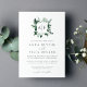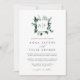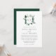 Unsere Einladung zur Hochzeit im Wilden Wald in Monogramm beinhaltet Ihre Initialen, Monogramm oder Doppel oben, eingebettet in einen quadratischen Kranz von winterfarbenem Wasser in winterlichen Schattierungen von Wald und Jäger grün. Moderne und elegante Atmosphäre im botanischen Trend für Hochzeiten im Winter oder Frühjahr.