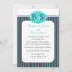 Diese Einladung zum Hochzeitsempfang ist ein sehr modernes Design, da es das aktualisierte Monogramm (eine seiner und ihre Monogramme) ganz oben enthält. Die modernen Farben Robineiblau und Stahlgrau werden in einem schönen Streifen kombiniert. Eine atemberaubende Post Hochzeitsempfehlung. Copyright henishouseuse paper