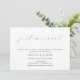 Just Married Hochzeitsankündigung auch als Hochzeitsempfang. Die doppelseitige Einladung zum Empfang "Just Married" in den Imitaten mit Goldfolie-Schriftzeichen, die die Hochzeit der Neuvermählten ankündigen und die Gäste zu einem lässigen Hochzeitsempfang einladen. Passen Sie mit Ihrem horizontalen Foto auf der Rückseite an.