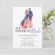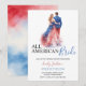 Dieses Design bietet eine elegante Einladung zur Hochzeitsfeier "All American Bride" zum 4. Juli mit einer romantischen Aquarell-Illustration einer Braut und eines Bräutigams in roter, weißer und blauer Kleidung. Perfekt für eine Hochzeitsfeier am 4. Juli, eine Militärbraut-Feier, eine patriotische Hochzeitsfeier oder ein amerikanisch inspiriertes Junggesellinnen-Abschiedsfest. Personalisieren Sie es mit Ihren Veranstaltungsdetails, um es ganz zu Ihrem Eigen zu machen!