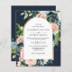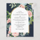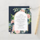Rustikale Wasserfarben Navy Blush Gold Blumengestecke Hochzeitseinladung.