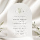 Feiern Sie Ihre Liebe mit dieser zeitlosen und raffinierten Hochzeitsveranstaltung mit einem zarten Olivenzweig-Monogramm und einer sauberen, modernen Bogenform. Ideal für Paare, die natürliche Eleganz und minimales Design schätzen. Diese Einladung hebt Ihre Initialen in einem anmutigen Serif-Schriftart über einem weichen grünen Motiv hervor, mit klassischem schwarzem Text auf einem knalligen, weißen Hintergrund. Ideal für Gartenhochzeiten, rustikale Chic-Feiern oder moderne minimalistische Zeremonien.