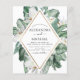 Das Budget Tropical Magnolia Blume mit Blumengarten Palm und Imitate Gold Foil Geometric Border Spring oder Summer Wedding Einladungen - beinhaltet schöne und elegante Schrift Typografie mit modernen tropischen botanischen Blume und Grün für die besondere Hochzeitstag-Feier.