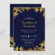 Diese luxuriöse Hochzeitseinladung besticht durch einen eleganten marinen Hintergrund mit raffinierten goldenen Blumenrahmen. Das formelle Design verströmt einen zeitlosen Charme, der sich perfekt für eine Hochzeitsfeier im Abend eignet. Die Einladung verwendet klassische Kalligraphie-Schriftart und enthält detaillierte Veranstaltungsinformationen. Ideal für eine Kathedralhochzeit, diese Einladung Set einen feinen Ton für den besonderen Tag. Freuen Sie sich auf die gepflegte und elegante Präsentation und sorgen für die nötigen Details für die Zeremonie und den Empfang.