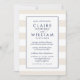 Die Metro Stripe Hochzeitseinladung verbindet moderne und traditionelle Elemente und bietet klassische gestreifte Stilelemente in einer subtilen und zeitlosen Farbpalette aus cremefarbenem Elfenbein, knusprigen Weiß- und Marineblau. Breite horizontale Streifen in Creme und Weiß rahmen Ihre Hochzeitsdetails in einer Mischung aus modernen Block und traditionellen Schriftzeichen in Marine. Karten werden in Vollblau umgeschaltet.
