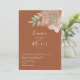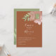 Einfache, moderne, minimale Terracotta verbrannte Orange Hochzeitseinladung mit abstrakten Aprikosen-Blume, Salbei grünem Blattwerk und Monogramm - Initialen oben rechts. Trendy, Natur inspiriert und elegant.