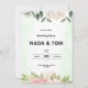 Mit Liebe in unseren Herzen und Träumen von ewig, laden wir Sie ein, unseren Hochzeitstag zu feiern. Inspiriert von der Schönheit der Natur, wird unser besonderer Tag mit eleganten grünen Aquarellakzenten geschmückt, die Wachstum, Harmonie und neue Anfänge symbolisieren. Begleiten Sie uns bei einem Fest der Liebe, des Lachens und der unvergesslichen Momente. Ihre Anwesenheit wird unseren Tag noch attraktiver machen!