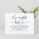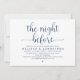 Mit unserer modernen, hochklassigen und marineblauen Modekampagne (The Night Before) zur Hochzeitsfeier im Probe verkünden Sie Ihr Glück. Es ist ideal für Paare, die sich entschieden haben, die Nacht vor ihrem großen Tag zu feiern. Mit seinem ausgeklügelten und spielerischen Design wird diese Einladung den Ton für ein unvergessliches Ereignis Set. Die Einladungskarte bietet modernes romantisches Drehbuchdesign und verleiht Ihrem Fest eine Touch zeitloser Eleganz. Designed by TeeshaDerrick