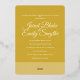 Betrachten Sie Gelb als Brennpunkt für Ihre Hochzeit? Mit dieser gelben und goldgelben Einladung können Sie Ihre Hochzeitsfeier noch weiter vertiefen. Auf der Vorderseite der Karte befindet sich ein schlichtes Blume-Design mit dem Namen und dem Datum der Hochzeit des Paares. Auf der Rückseite der Karte sind die Einzelheiten der Hochzeit angegeben. Weich gelb und goldfarben. Verwenden Sie die Vorlage zum Personalisieren.
