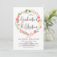 Fun und whimsical Einladung perfekt für Frühling und Garten Abschlüsse. Es enthält Kalligraphieskripte und Illustrationen verschiedener Blume.