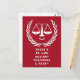 Creative Legal Party lädt zu Juristenfeiern, Ankündigung der Anwaltskanzlei, Ankündigung von Abschlüssen oder Geburtstagsparty mit lustigen Gerichten auf rotem Hintergrund ein.