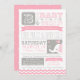 Eine niedliche Babydusche für ein kleines Mädchen. Niedlicher Elefant und Vogel, mit Zickzack Streifen, Zirkusposter-Thema und niedlicher Typografie!