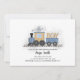 Schicken Sie diese Vintagen Zugeinladungen an Freunde und Familie, um sie zur Boy Baby Shower einzuladen. Dieses moderne Design ist für beide Baby Duschen perfekt. Diese niedlichen Choo-Zug-Einladungen sind mit einer Zugsimulation versehen, die auf einer niedlichen Strecke zur Mutterschaft abgleitet. Das Zugfahrzeug trägt das Wort Boy. Auch in der Gestaltung ist eine Aquarell-Illustration, die die Worte 'it's a' herauspuffert, während Kohle den Hintergrund sprengt. Personalisieren Sie Ihre Einladung mit Ihren Veranstaltungsdetails in schöner dekorativer Typografie. Die Farben sind beige, blau, weiß und schwarz.
