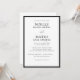 Dies ist eine klassische Schwarz-Weiß-Hochzeitseinladung. Das einfache, aber elegante Design fügt jedem Anlass eine Touch Stil hinzu. Passen Sie die Farbe des Randes an, um Ihren persönlichen Stil Anzug. Personalisieren Sie es mit einem Verlobung-Foto auf der Rückseite, oder ließ die klassische Einfachheit kommunizieren die Schönheit Ihrer Liebe Geschichte.