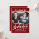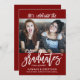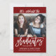 Eine trendy Graduierungsparty Einladung/Ankündigung für Beste Freundin, Geschwister, Cousin, Familienmitglieder, Absolventen oder andere mehrstufige Anlässe, diese Einladung enthält die Namen der Absolventen, Klassenzimmer und Schule vor der Einladung zusammen mit einem Beispiel-Foto, das Sie durch Ihr gewünschtes Foto ersetzen. Die Rückseite der Einladung hat eine Textvorlage für Ihre Abschlussfeier Details. Das Farbschema ist marsala rot mit weißem Text.