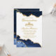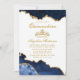 Moderne elegante Watercolor Blau und Gold Marmor Agate Geode Quinceanera Einladung. Goldenes Drehbuch. Goldkrone.