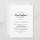 Diese minimalistische Kalligraphie Graduierungsparty lädt zu einem rustikalen Fest ein. Das einfache und elegante Design zeichnet sich durch klassische und extravagante Schriftzeichen in Schwarz und Weiß aus.