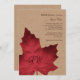 Auf einem grabfarbenen Hintergrund betont ein großes, mit Monogramm Ahornblatt diese Einladung für die Hochzeit im Jahrgang. Es wird auf dem Basispapier gezeigt, aber ich empfehle das Gewicht und die Textur des Leinenpapiers.