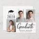 Moderne, preisgünstige Graduiertenfeier mit 3 Foto-Collage, "Graduate" in großen Buchstaben und dem Graduiertenjahr, -name und -schule in einfacher Typografie. Fügen Sie Ihre Party-Details auf der Rückseite hinzu.