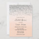 Bridal Dusche Einladung mit silbernen Glitzer Look Design und ombre pfirsichfarben Aquarell Hintergrund.