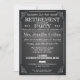 Schulzeit für immer vorbei! Feiern Sie das nächste Kapitel eines wunderbaren Erziehers mit dieser charmanten Einladung im Kreidetafel-Stil zur Ruhestandsfeier. Das Design zeigt spielerische weiße Schriftzüge vor einem klassischen schwarzen Kreidetafel-Hintergrund, der an ein Klassenzimmer erinnert. Es hebt "Ruhestandsfeier" prominent hervor, gefolgt von Platz, um den Namen des Rentners und Details über seine unglaublichen Jahre des Unterrichts hinzuzufügen. Die Einladung listet klar das Datum, die Uhrzeit und den Veranstaltungsort für die Feier auf, sodass es für die Gäste leicht ist, ihre Teilnahme zu planen. Mit einer lustigen "Es ist eine Überraschung!"-Nachricht und RSVP-Details ist diese Einladung perfekt, um den wohlverdienten Ruhestand eines beliebten Lehrers zu ehren.