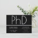 Eine Einladung zu einer PhD-Abschlussfeier. Diese minimalistische Einladung ist schwarz-weiß. Alle Wörter und beide Farben können individuell angepasst werden.