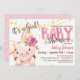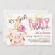 Baby Mädchen Schwein, Schweinezucht Tier Dusche Einladung. Die Farben sind braun, braun und rosa.