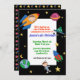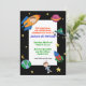 Weltraum, Planeten, Raketen und Astronauten. Eine perfekte Geburtstagseinladung für alle Kinder, die Lieben im Weltraum unterwegs sind. Die Einladung ist leicht an Ihre Formulierung und Ihren Schriftart anzupassen.