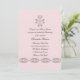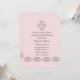 Eine elegante Einladung für die religiöse Feier eines Mädchens mit einer Vintagen Schriftrolle mit einem koordinierenden Kreuz auf einem weichen rosa Hintergrund. Die Rückseite eignet sich perfekt für Empfang-Informationen.Die Karte ist leicht anzupassen mit Ihrem Wortlaut, Schriftart, Schriftart Farbe und Auswahl von sechs Papiertypen.