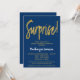 Eine elegante, moderne Party Einladung in Schwarz und Gold überrascht den Ruhestand. Glam-Skripttext oben und Goldtext unten mit dem Namen in Stand-out weiß