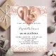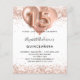 Für eine elegante Quinceañera, 15. Ein stilvoller weißer Hintergrund. Mit Rose Gold, rosa Imitat Glitzer, Glitzern und Ballons dekoriert. Personalisieren und fügen Sie einen Namen und Party-Details. Der Name ist mit einem handgeschriebenen Stil Skript geschrieben, Nummer 15 mit ballon Stil Schriftart.