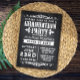 Herzlichen Glückwunsch an den Akademiker mit einem festlichen Ereignis. Einzigartiger rustikaler dunkler Holzkohle-grauer und schwarzer Hintergrund mit weißer Kreide-Optik und antiken Dekoelementen. Einladung zur Graduation Party für Jungen oder Mädchen, großartiges Thema für eine Grillen, Kochkunst oder Outdoor-Graduiertenfest.