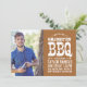 Coole rustikale Abschluss Barbecue Party Einladung mit Not Vintage Typografie. Verwenden Sie die Designwerkzeuge, um eine beliebige Hintergrundfarbe auszuwählen, um sich mit Ihren Schulfarben oder dem Party-Thema abzustimmen. Fügen Sie vorne Ihre Angaben zu Foto und Graduiertengruppe hinzu. Verwenden Sie die Designtools, um mehr Fotos und Text hinzuzufügen, Schriftart und Farben zu bearbeiten, um eine einzigartige Abschluss-Ankündigung und Party Einladung zu erstellen.