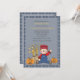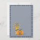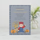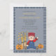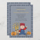 Eine bezaubernde Schrecke, die neben einem Heuballen und zwei Jack-o-Laternen sitzt, trägt ein Lächeln und ein winkendes Hallo. Es ist gerahmt mit einem karierten Muster, das sich auf der Rückseite vollständig wiederholt. Diese vielseitige Einladung eignet sich gut für Kindergeburtstage, Partys, Herbstduschen, Erntedank und vieles mehr.